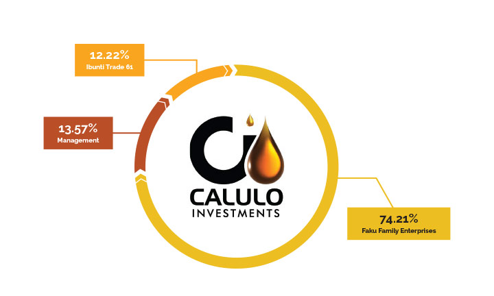 Black economic empowerment and transformation continue to be our focus. Our shareholding structure ensures that Calulo remains a black controlled empowerment entity with a sustainable black shareholder base. Calulo’s overall black shareholding exceeds 76%.